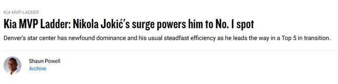 北京时间11月14日,NBA官网更新了MVP排行榜,约基奇升至首位。和上周一样,前五位依然都是国际球员。以下是具体排名和解析——