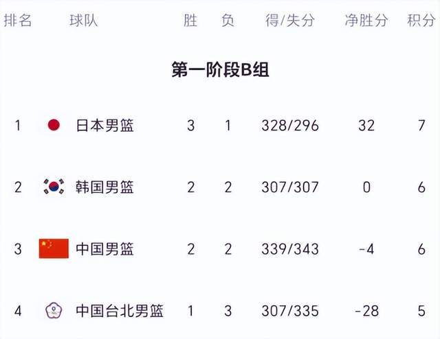 尽管还剩两轮,但日本队凭借3胜1负的战绩,已经提前锁定前三名,成为这个小组首支晋级的球队,中国队、韩国队、中国台北队竞争剩余两个晋级名额。